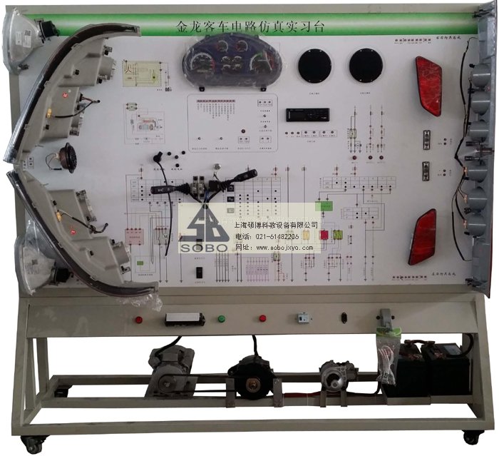 金龍客車電路仿真實習臺采用全新原整車電器實物為基礎(chǔ),充分展示汽車儀表系統(tǒng)、燈光系統(tǒng)、雨刮系統(tǒng)、喇叭系統(tǒng)、發(fā)動機電器系統(tǒng)、起動系統(tǒng)和充電系統(tǒng)等汽車電器各系統(tǒng)的組成結(jié)構(gòu)和工作過程。