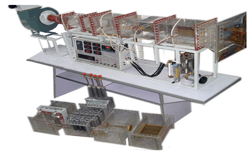 風(fēng)機(jī),自動(dòng)調(diào)節(jié)風(fēng)門(mén),組合式有機(jī)玻璃風(fēng)洞,有機(jī)玻璃實(shí)驗(yàn)管段,有機(jī)玻璃叉排、順排實(shí)驗(yàn)段,旋轉(zhuǎn)圓柱試件,紫銅平板試件,穩(wěn)壓電源配電位器調(diào)節(jié)加熱功率,電流表,電壓表,畢托管及差壓傳感器,PT100熱電阻測(cè)溫,巡檢儀顯示溫度、阻力、流量,不銹鋼臺(tái)架等。