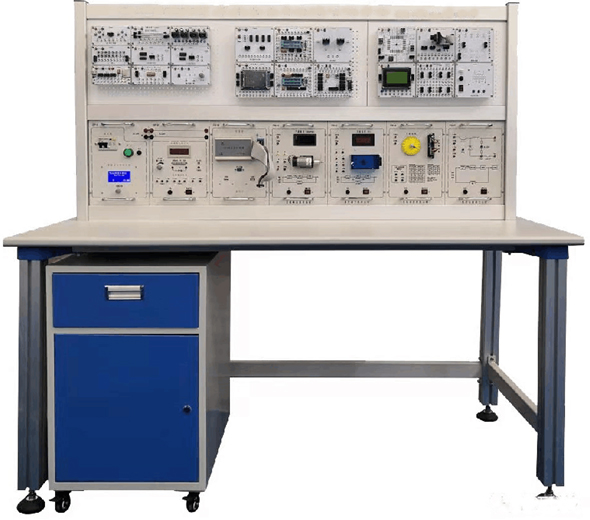 實(shí)訓(xùn)臺(tái)主要有實(shí)訓(xùn)桌和實(shí)訓(xùn)臺(tái)架組成,實(shí)訓(xùn)桌采用型材結(jié)構(gòu),桌腿采用4080型材,桌面為防火、防水、耐磨高密度板,結(jié)構(gòu)堅(jiān)固,造形美觀大方。面板采用鋁板結(jié)構(gòu),操作面板文字符號(hào)用現(xiàn)代彩色噴描技術(shù)處理,具有防塵、美觀、耐磨、不掉色等特點(diǎn)。