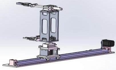 本站的功能是完成向各個(gè)工作單元輸送工件,系統(tǒng)分為雙機(jī)械手單元和直線位移位置精確控制單元兩部分,系統(tǒng)上電后,先執(zhí)行回原點(diǎn)操作,當(dāng)?shù)竭_(dá)原點(diǎn)位置后,若系統(tǒng)啟動(dòng),供料站物料臺(tái)檢測(cè)傳感器檢測(cè)到有工件時(shí),機(jī)械手整體先提升到位后手爪伸出到位后手爪夾緊,手爪夾緊到位手爪開始縮會(huì)機(jī)械手整體下將到位后,伺服電機(jī)開始工作按設(shè)定好的脈沖量到加工站。加工站到位后機(jī)械手整體提升,提升到位后手爪伸出伸出到位后機(jī)械手整體下降,下降到位后工件已放入加工站物料臺(tái)上,然后手爪松開,松開到位后機(jī)械手回縮,等加工站加工完成后再將工件送到裝配站進(jìn)行大小料裝配,裝配完成后機(jī)械手抓取物料送到分揀站進(jìn)行分揀,這樣雙機(jī)械手的一個(gè)加工運(yùn)動(dòng)過(guò)程就完成了。只要料筒不缺料會(huì)持續(xù)以上過(guò)程。當(dāng)料筒出現(xiàn)缺料后,機(jī)器人會(huì)搬運(yùn)過(guò)來(lái)物料,機(jī)械手會(huì)運(yùn)行到取料位置抓取機(jī)器人上的小料,然后放入小料筒中,然后返回原點(diǎn),當(dāng)機(jī)器人再次搬運(yùn)過(guò)來(lái)物料,機(jī)械手會(huì)運(yùn)行到取料位置抓取機(jī)器人上的大料,然后放入大料筒中,這樣一個(gè)物料的拆分過(guò)程就完成了,直到把碼垛料臺(tái)上的物料全部拆分完成后為止。