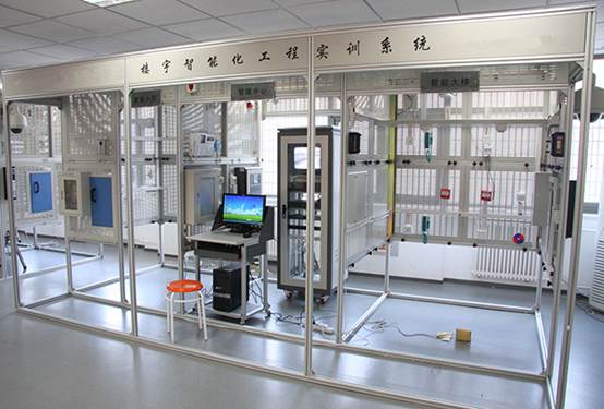 樓宇智能化工程實(shí)訓(xùn)系統(tǒng)在結(jié)構(gòu)上以智能建筑模型為基礎(chǔ),包含了智能大樓、智能小區(qū)、管理中心和樓道等典型結(jié)構(gòu),涵蓋了對(duì)講門禁、安防、視頻監(jiān)控、消防、綜合布線和DDC監(jiān)控照明六個(gè)系統(tǒng),各系統(tǒng)既可獨(dú)立運(yùn)行,也可實(shí)現(xiàn)聯(lián)動(dòng)。通過此系統(tǒng)進(jìn)行項(xiàng)目訓(xùn)練,檢驗(yàn)學(xué)生的團(tuán)隊(duì)協(xié)作能力、計(jì)劃組織能力、樓宇設(shè)備安裝與調(diào)試能力、工程實(shí)施能力、職業(yè)素養(yǎng)和交流溝通能力等。