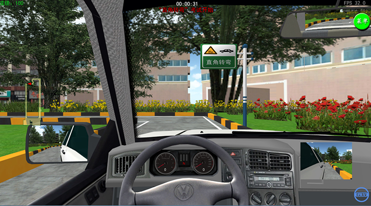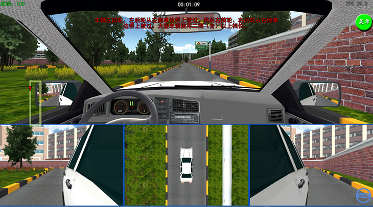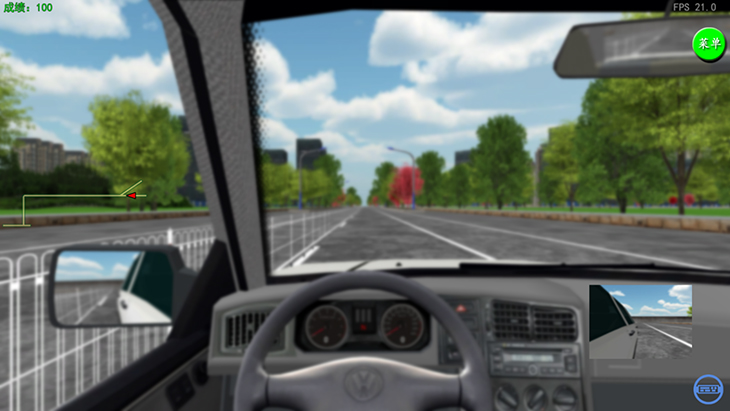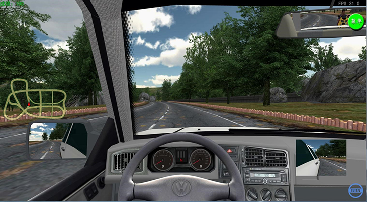 3)具有座艙和顯示器的互動視景系統(tǒng),并具有錯誤駕駛記錄和提示功能;右暰跋到y(tǒng)應(yīng)具備圖形工作站、顯示設(shè)備、音響功放等組成,可實(shí)現(xiàn)駕駛員前景140度以上視角的屏幕顯示。