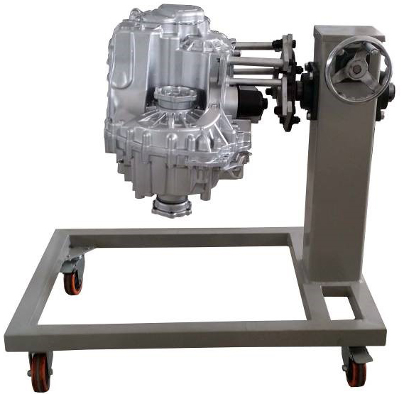 采用減速翻轉(zhuǎn)機構(gòu),可使變速器旋轉(zhuǎn)任意角度,并能任意位置鎖止,便于學生從不同的角度進行拆卸和裝配。
