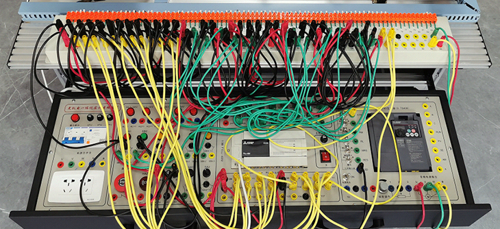 3.開放性:該實驗裝置PLC模塊I/O端子、變頻器的接線端子、各常用模塊與PLC的連接端子、傳感器、按鈕開關(guān)、指示燈元件等端子全部開放,均采用護套插座導(dǎo)線連接,可進行電氣線路控制、電氣線路設(shè)計等內(nèi)容實訓(xùn)。
