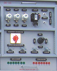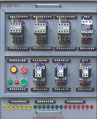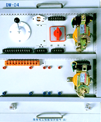 掛箱上裝有螺旋式熔斷器、直插式熔斷器、低壓斷路器、時間繼電器、交流接觸器、接線端子和安全插座等。