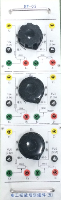掛箱上已安裝有熔斷器、鈕子開關、交流接觸器、時間繼電器、直流接觸器、按鈕開關、信號指示燈、熱繼電器等,所有器件均采用國內(nèi)外知名品牌。各種實訓元器件的接線都在接線端子排上進行接線,避免了因長期在器件本身進行螺絲拆裝而導致元器件的損耗,通過走線槽走線,進行工藝布線訓練。實訓電路與裝置電源的連接通過安全插座和高可靠護套結構手槍插連接線,安全快捷。