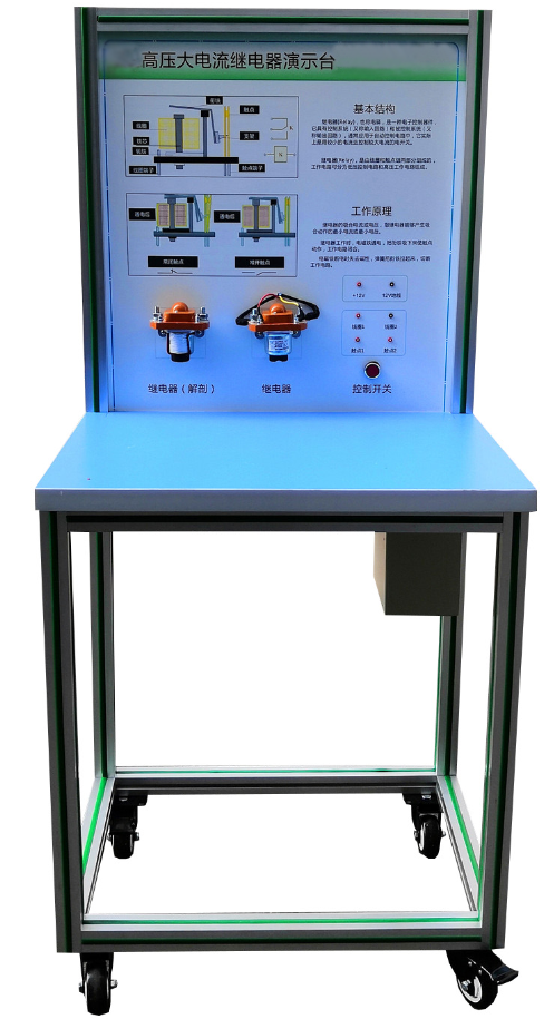 五、基本配置:高壓大電流繼電器EV200AAANA(兩件,其中一件解剖),高壓大電流繼電器EVR200CE(兩件,其中一件解剖),數(shù)字式萬用表,開關(guān)電源,手動開關(guān),可移動實訓臺(帶原理面板)。